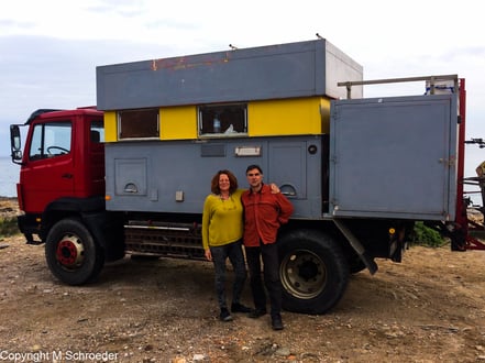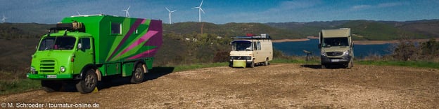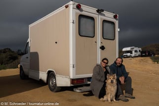 Fast jeder Wohnmobilfahrer in Portugal kennt Tanja und Andre, meist allerdings eher unter ihren Pseudonymen "Crosli" und "Amumot". Tanja hat sich 2014 auf den Weg gemacht, Andre lebt schon seit 2009 im Wohnmobil. Beide sind selbständig, bloggen, Tanja schreibt mittlerweile auch Bücher. Andre betreibt einen Shop und eine Werkstatt für Wohnmobiltechnik und -bedarf.