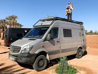Dennis mit seinem Hund Ciara haben wir 2020 in Marokko kennengelernt. Eines Nachmittags stand er vor unserem Auto und fragte, ob wir nicht Lust hätten mit ihm und einem anderen Pärchen durch die Sahara zu fahren.