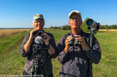 Die beiden sind hinsichtlich der Bestimmung von Vögeln mehr als fit. Uns beeindrucken sie besonders dadurch, dass sie anhand von Flugverhalten und Silhouette nicht nur auf die Art sondern auch auf Alter und Geschlecht schließen können.