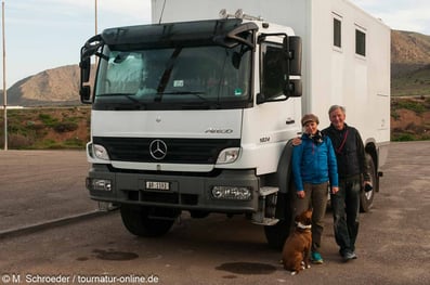 Die beiden leben seit einigen Jahren im Wohnmobil. Sie waren viele Jahre mit ihrem Mercedes Benz Sprinter 316 mit CS Ausbau Rondo in Südamerika unterwegs, bis Corona die Reise abrupt unterbrach.