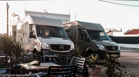 An der Küste Andalusiens lernen wir Irma und Guri aus Aachen kennen. Die beiden sind mit ihrer Hub-Kabine in diesem Jahr nur in Spanien und Portugal unterwegs, ansonsten aber schon weit gereist. Sie erzählen uns, dass sie auch schon mehrere Jahre ein Restaurant in Marokko betrieben haben. Heute kocht Guri, der eigentlich aus Litauen stammt, im Sommer in der eigenen Tapas-Bar Frankreich, während im Winter das Mobil bewegt wird.