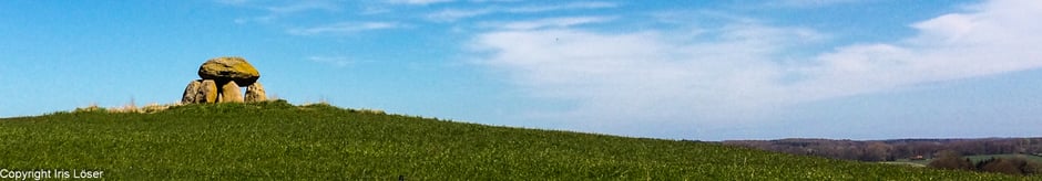 Unser sehr empfehlenswerter Reisebegleiter aus dem Bruckmann-Verlag "Deutschlands letzte Paradiese. Das Handbuch aller deutschen Natur- und Nationalparks" weist uns darauf hin, dass ganz in der Nähe ein sehenswerter Dolmen, also ein vermutlich Bestattungszwecken dienendes Bauwerk aus unbehauenen Steinen aus der Jungsteinzeit, zu sehen ist. Mit ein wenig Recherche ermitteln wir die Koordinaten des Dolmen und finden ihn nach etwas Suchen auf dem freien Feld.