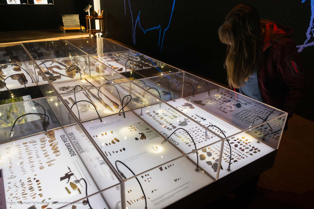 Da ein Besuch der Originalplätze nur mit Anmeldung im Rahmen einer begleiteten Tour möglich ist, begnügen wir uns mit einem Besuch des interessanten Museums zum Thema in Vila Nova de Foz Côa. Achtung: Entgegen der Darstellung im Internet ist das Museum bei unserem Besuch nicht durchgehend geöffnet. Glücklicherweise sind wir mit unserem Rundgang praktisch fertig, als wir um 12:30 Uhr freundlich aber bestimmt auf Portugiesisch mit der Info hinaus komplementiert werden, dass wir um 14 Uhr wiederkommen dürften und in der Zwischenzeit ja etwas essen gehen könnten.