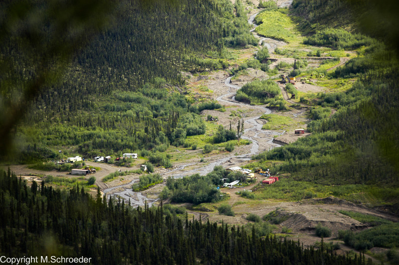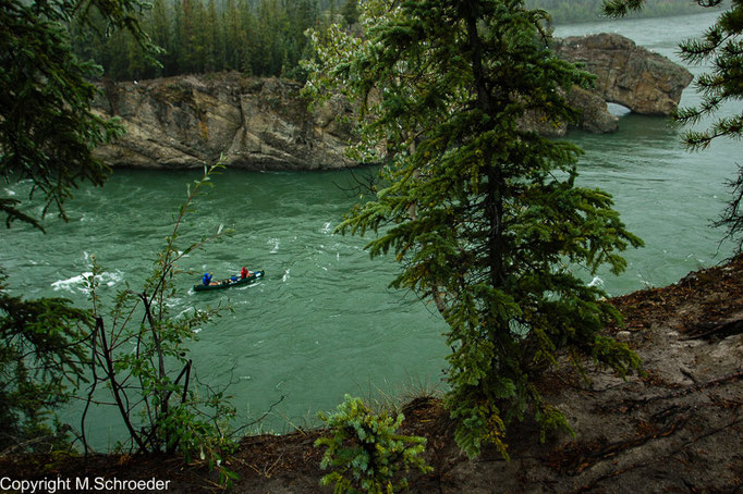 Im Gegensatz zu uns, die wir uns auf gut ausgebauter Straße bewegen, mussten sich die Goldsucher zu Fuß über steile Pässe quälen oder mit den Stromschnellen des Yukon kämpfen.Die so genannten „Five Finger Rapids“ beispielsweise konnten Raddampfer nur durchfahren, in dem sie sich an ihren eigenen Ankerketten stromaufwärts zogen.