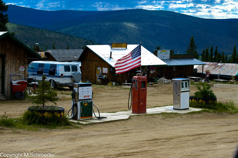 Doch auch solche Streckenabschnitte bergen Erlebnisse. Uns jedenfalls winkt ein anderer Wohnmobilist an den Straßenrand. Der US-Amerikaner hat keinen Sprit mehr und ist mit samt Familie liegen geblieben. Dies erinnert uns daran, dass es hier wichtig ist, jede Gelegenheit zum Tanken zu nutzen, auch wenn der Tank noch halb voll sein sollte, aber auch, dass hier jeder jedem hilft. Wir fühlen uns sicherer als auf mancher Autobahn in Europa. Wenn man in Alaska zum Fotografieren stoppt, passiert es häufig, dass das nächste Auto anhält und der Fahrer sich erkundigt, ob man Hilfe benötigt. Trotzdem muss man sich keine Sorgen machen, einen Stau zu verursachen; dass nächste Auto kommt wahrscheinlich erst in einer halben Stunde vorbei.