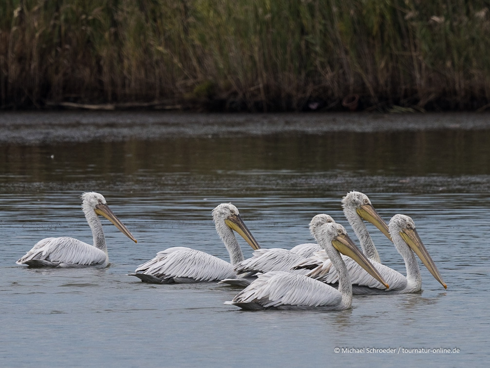 teilt sich die Straße. Wir fahren rechts in den unbefestigten Weg. Entlang des Wasser beobachten wir auf den nächsten 4 Kilometer Vögel wie Habicht, Rohrweihe, Silber- und Seidenreiher, eine Kolonie der seltenen Krauskopfpelikane, Flamingos und immer wieder Eisvögel. Im Laufe der kurzen Zeit sehen wir mindestens zehn unterschiedliche Eisvögel - wenn nicht mehr!