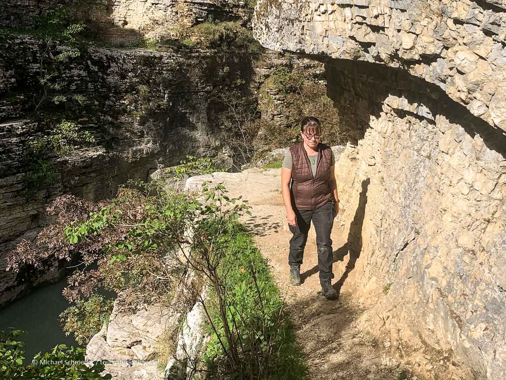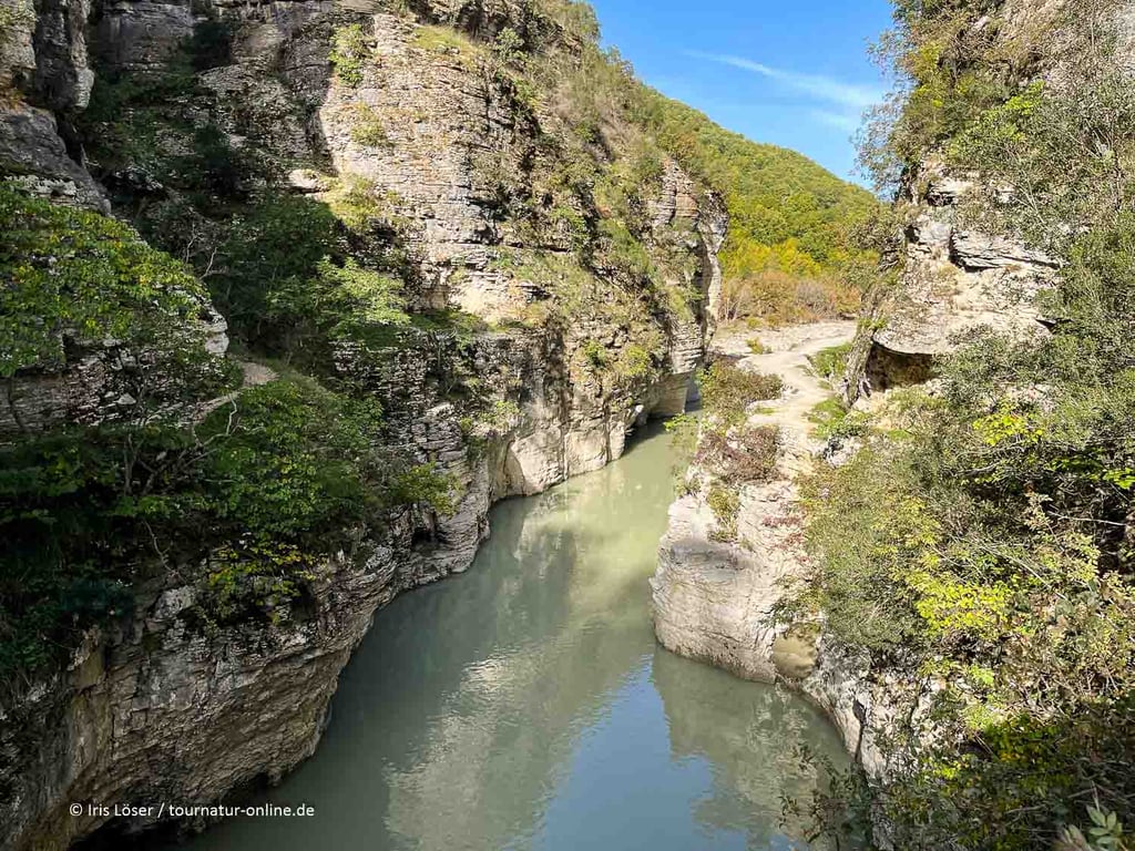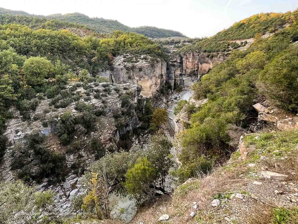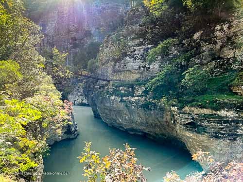 Kurz vor dem Ende gibt es einen kleinen Weg rechts ab. Dieser führt zu der abenteuerlichen Osum-Canyon-Brücke
