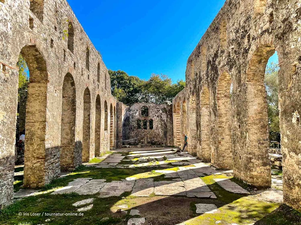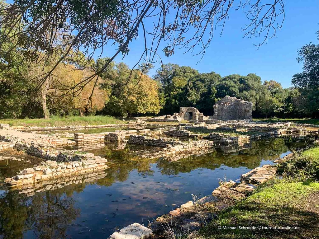 Die historische Stadt Butrint beeindruckt durch zahlreichen Ruinen aus der Römerzeit, u.a. einem Amphietheater, einer Akropolis und ein Äquadukt.
