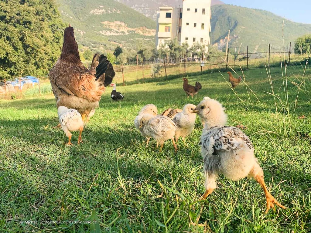Der Stellplatz liegt direkt am Fluss Vjosa, ist kostenlos und sehr großzügig. Man teilt sich den Platz mit Hühnern, Ziegen und anderen Getier - aber alles sehr nett und total entspannt.