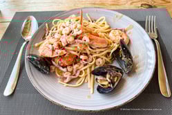 Es gibt natürlich auch andere Dinge auf der Karte. Alles wird frisch hergestellt - das dauert allerdings seine Zeit. Am ersten Abend bestellt Michael ein Omelette und wartet ewig. Grund: Die Köchin musste suchen, wie die eigenen, freilaufenden Hühner die Eier versteckt hatten.
