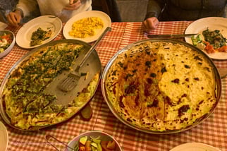 Am Abend geht man dann in das kleine Restaurant am Platz und bestellt "Börek". Dieser wird extra für uns auf dem Grill vor dem Gebäude zubereitet (siehe Foto).