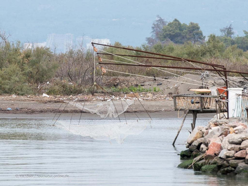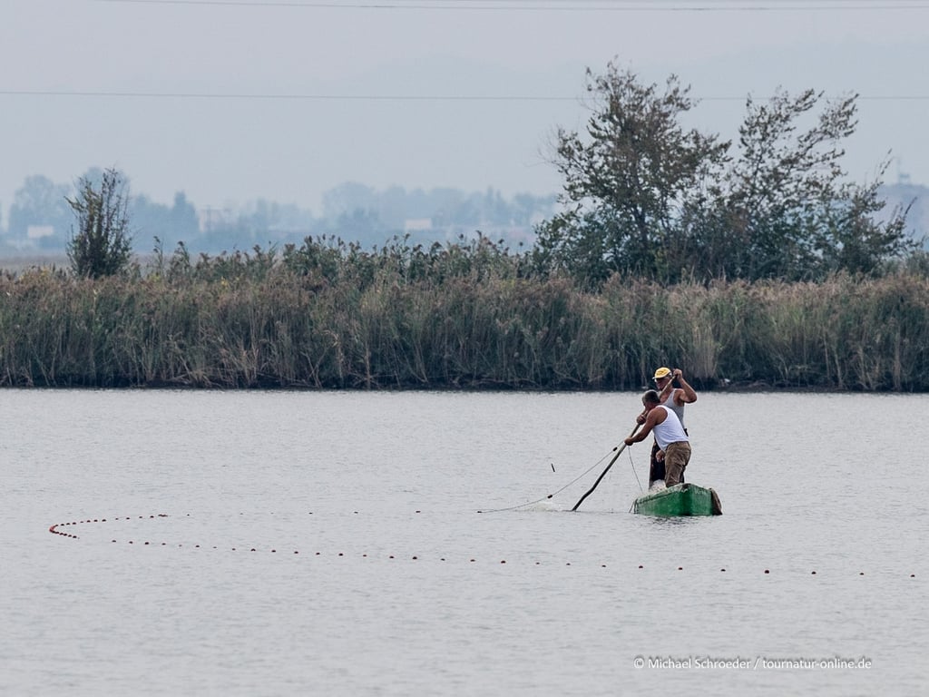 Die drei Lagunen vor Lezha bilden das Delta des Flusses Kleinen Drin. Neben den Hotelburgen im Norden gibt es südlich davon weitreichende Sumpfgebiete, die man zum Teil mit dem Auto befahren kann. Wir durchqueren die Hotelanlagen und biegen auf der Halbinsel Richtung Süden und erreichen die nördlichste Lagune: