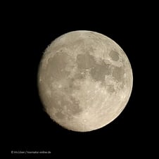 Wir holen das Spektiv heraus und sehen Mond, Saturn mit dem Ring und Jupiter mit seinen vier galileischen Monden.