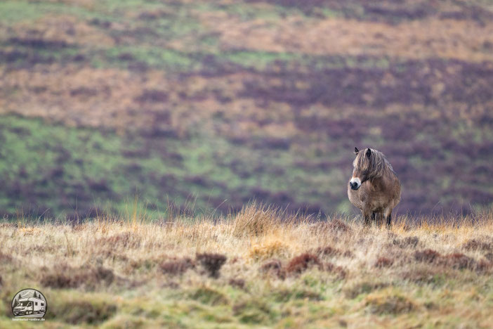 Unser nächstes Ziel ist der Exmoor National Park, der berühmt ist für seine weite Moorflächen, sanfte Hügel und tiefe Täler. Typisch für den Park sind die hier halbwild lebenden Exmoor-Ponys, die frei durch die Heidelandschaft ziehen, sowie große Rotwildbestände.