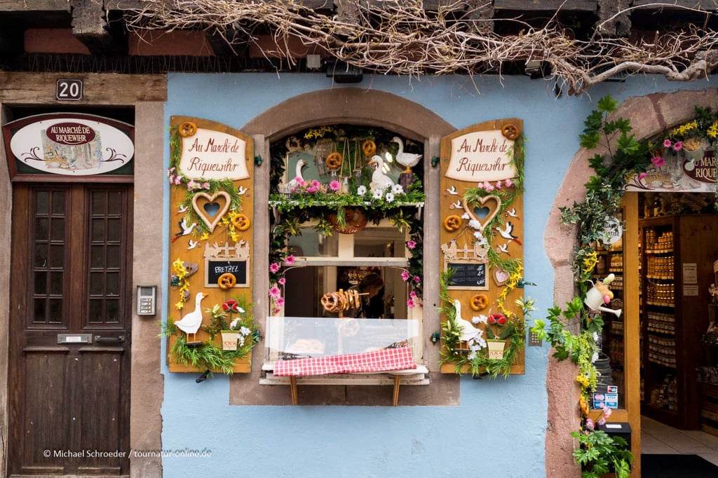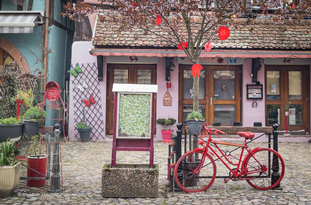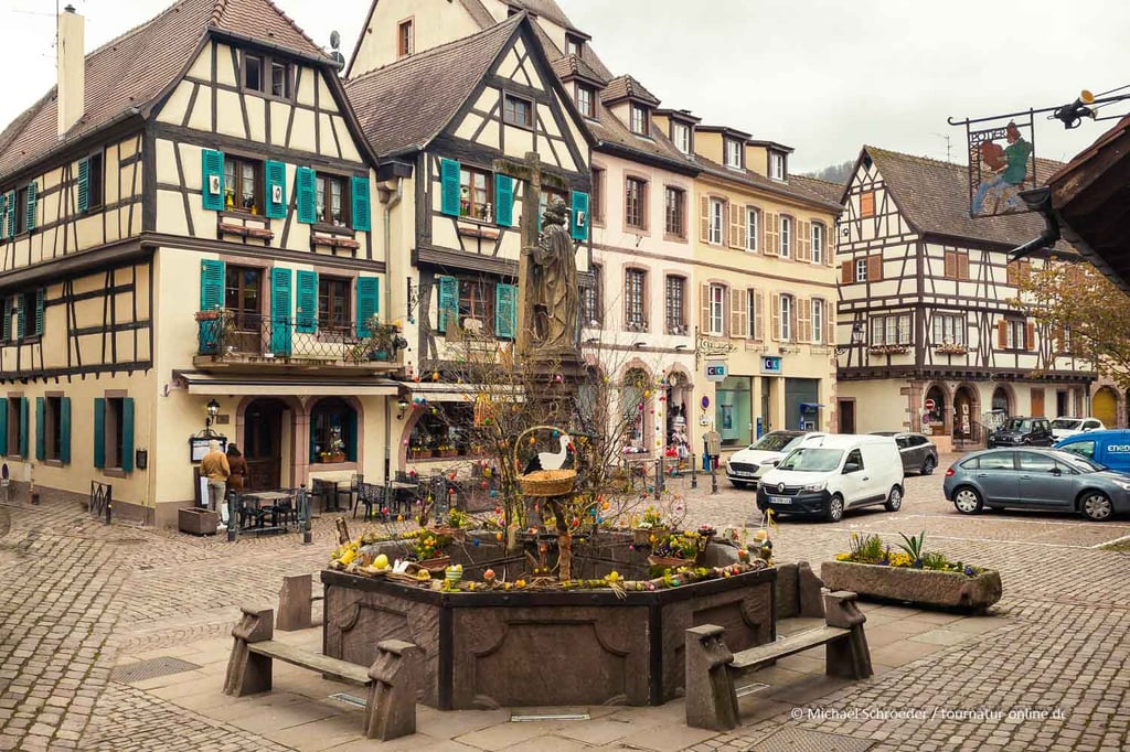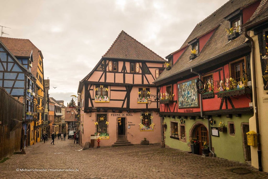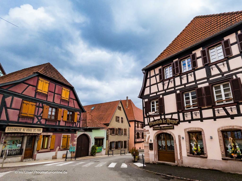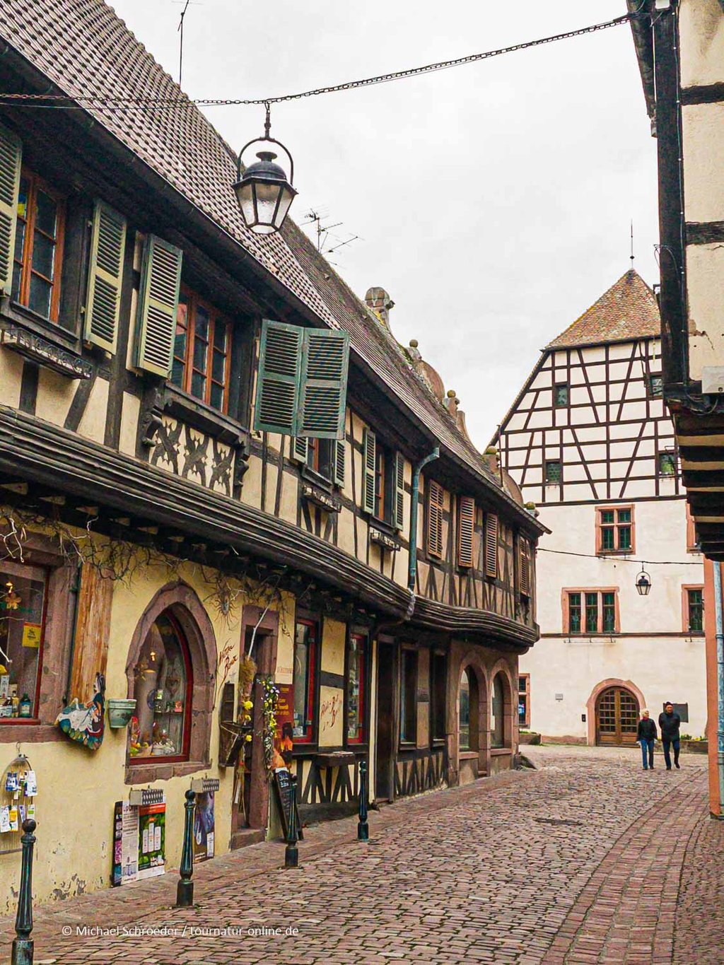 Etwa fünf Kilometer südlich liegt das kleine Riquewihr, eines der bekanntesten Ortschaften entlang der Elsässer Weinstraße. Der ganze Ort wirkt wie ein Muesum. Wir sind froh, nicht an einem Wochenende hier gewesen zu sein, denn auch unter der Woche sind viele Touristen hier unterwegs.