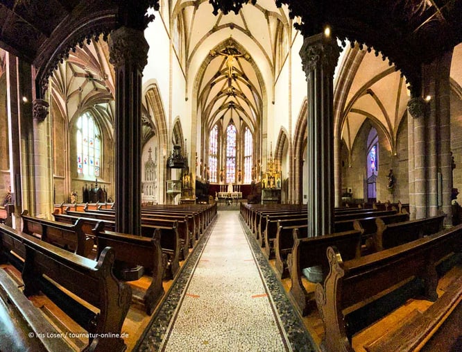 Die gotische Kirche gilt neben den viel größeren Münstern zu Straßburg und Freiburg im Breisgau als eines der Haupt- und Meisterwerke gotischer Bau- und Ausstattungskunst am Oberrhein.