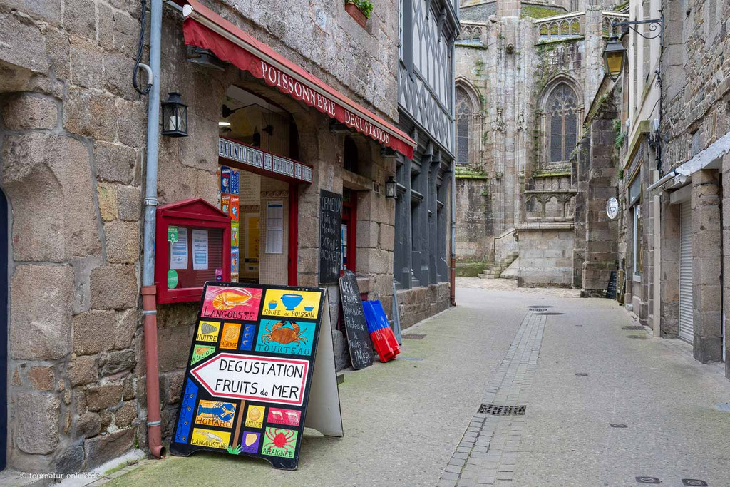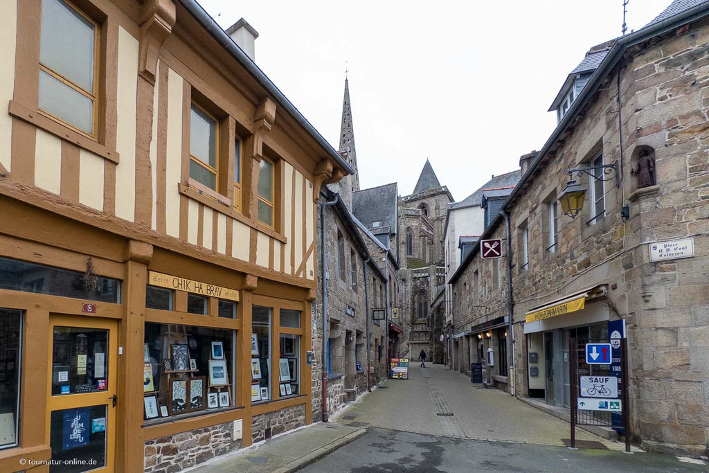 Die charmante Stadt Tréguier liegt landeinwärts am gezeitenabhängigen Mündungstrichters der Flüsse Jaudy und Guindy und ist eines unserer persönlichen Highlights dieser Reise. Wir sind begeistert von der abendlichen Stimmung rund um die gotische Kathedrale Saint-Tugdual und schlendern bei romantischer Beleuchtung durch die malerischen Gassen der Altstadt vorbei an gut erhaltenen Fachwerkhäuser.