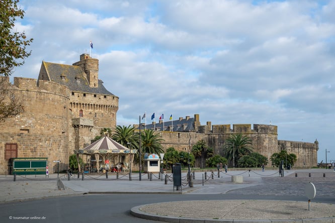 Saint-Malo ist eine bedeutende Hafenstadt mit knapp 50.000 Einwohnern. Berühmt ist die Stadt für ihren von einer Granitmauer umgebene Stadtkern "intra muros" (umgeben von Mauern) sowie ihrer Festungsanlagen und ist einer der meistbesuchten Orte Frankreichs. Nach der fast vollständigen Zerstörung gegen Ende des zweiten Weltkrieg wurde die historischer Altstadt originalgetreu wieder aufgebaut.