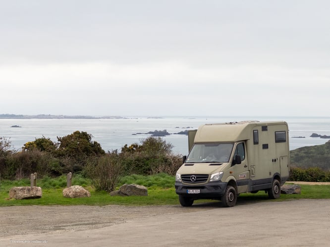 Die rosa Granitfelsen der Côte de granit rose sind eines der touristischen Hotspots der Bretagne. Dementsprechend schwierig ist hier, Parkmöglichkeiten für ein Wohnmobil zu finden. Die meisten Parkplätze sind selbst im Herbst und Winter mit Höhenbegrenzungen versehen.
