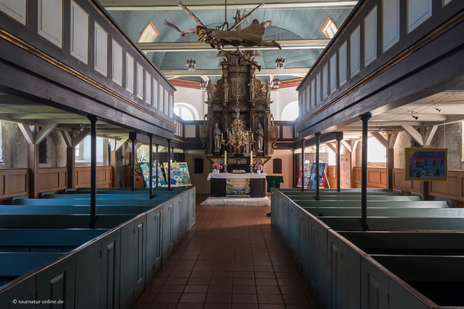Nah am Deich steht die Kirche St. Georg aus dem 17. Jahrhundert mit ihrem bereits um 1300 errichteten Turm, die in den Sommermonaten von ehrenamtlichen Kirchenwächtern von 15 bis 18 Uhr geöffnet wird.