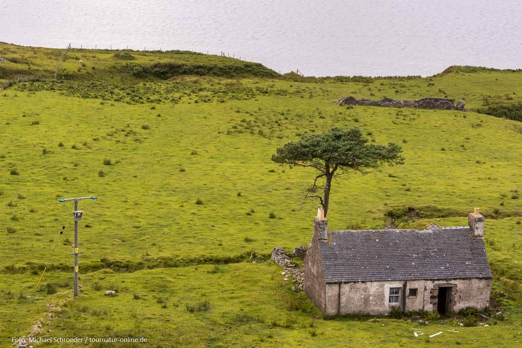 Wir fahren nun in den Inselnorden, der sich als landschaftlich schroffer und reizvoller präsentiert, aber auch hier Hüllen sich die Berge in Wolken. Hier haben wir auch endlich mehr Glück bei der Vogelbeobachtung und so können wir von der Kreuzung der Straßen A863 und B885 am Amar River aus sechs Seeadler bei waghalsigen Flugmanövern zusehen.