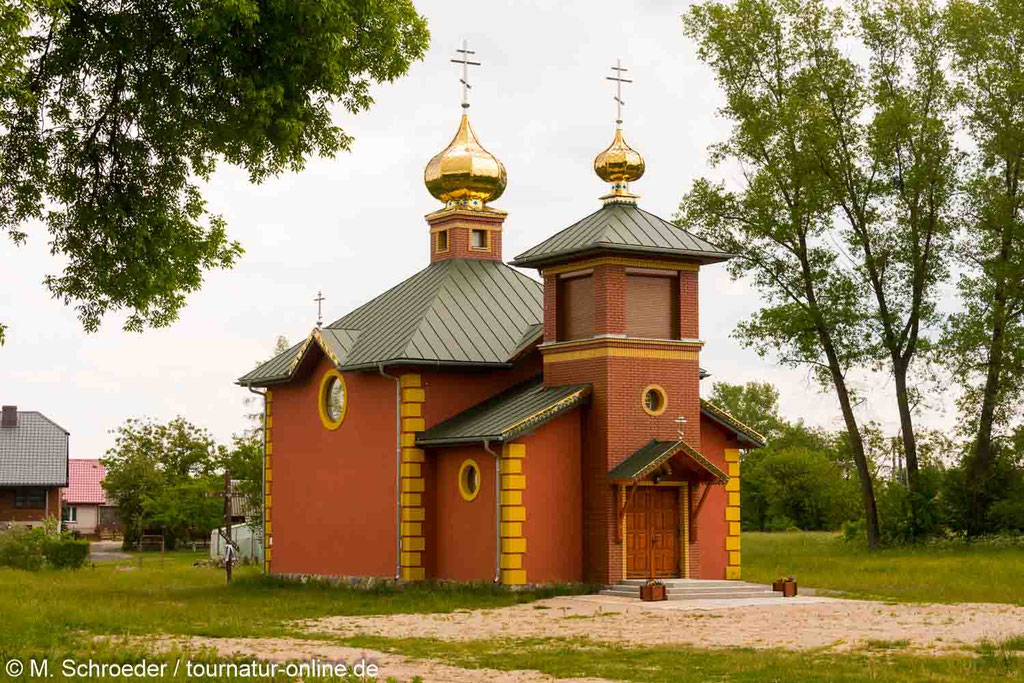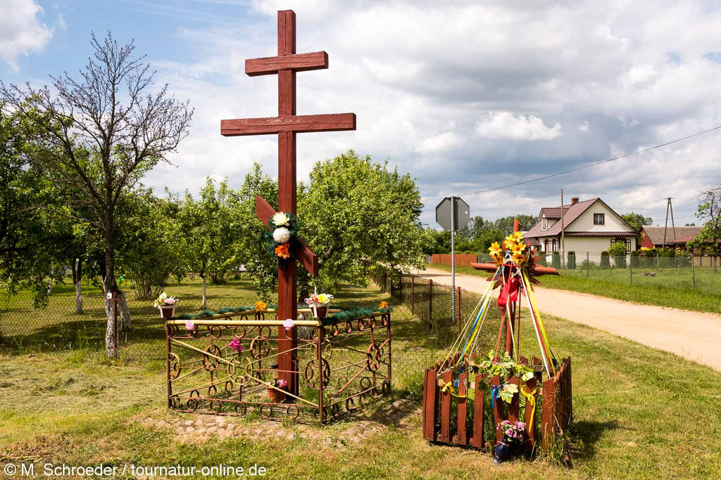 Unser Weg führt uns durch Gebiete im Grenzgebiet zu Weißrussland und der Ukraine. Der russische Einfluss zeigt sich deutlich in den zahlreichen Kreuzen am Wegesrand und an den Kirchen. Nicht länger sieht man das lateinische Kreuz mit gegenüber dem Querbalken längeren Längsachsen, sondern man trifft immer häufiger auf das dreiarmige russisch-orthodox Kreuz mit drei Querbalken, von denen der untere üblicherweise schräg dargestellt ist. Die orthodoxen Kirchen fallen sofort durch Üppigkeit auf, die sich schon von außen in den prunkvollen, meist vergoldeten Zwiebeltürmen zeigt.