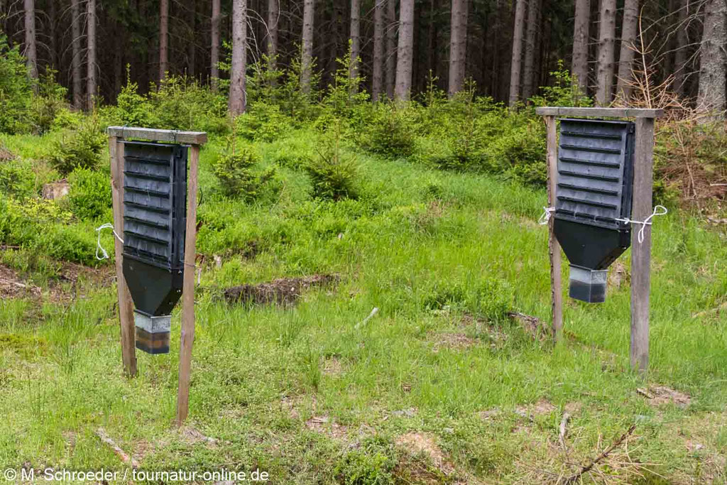 Für uns geht es weiter durch Schlesien entlang der Grenze zu Tschechien. Wir durchstreifen das Landschaftsschutzpark Beskidu Śląskiego und sind froh, dass es hier im dichten Wald kühl ist. In der Sonne ist die Hitze heute wahrlich kaum auszuhalten. Da wir versuchen den Park auf dem kürzesten Weg zu durchqueren, fahren wir auf engen Waldwegen. Da aber immer wieder Spuren von schwerem Gerät zu sehen sind, muss es ja irgendwie weitergehen. Unterwegs fallen mit Lockstoffen gefüllte Borkenkäferfallen zur Eindämmung der Schädlingspopulation auf. Diese werden männlichen Borkenkäfern zum Verhängnis , wenn Sie dem Duft der Weibchen folgen.