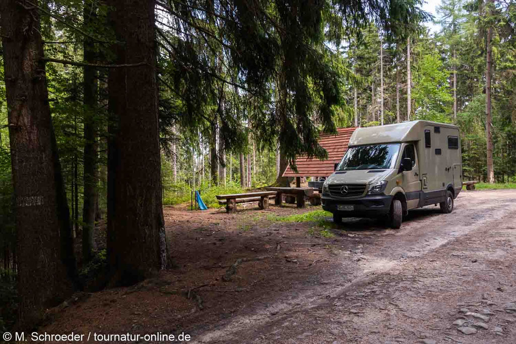 Heuscheuergebirge: gebührenfreier Parkplatz an der Einfahrt zum Felslabyrinth „Białe Skały“