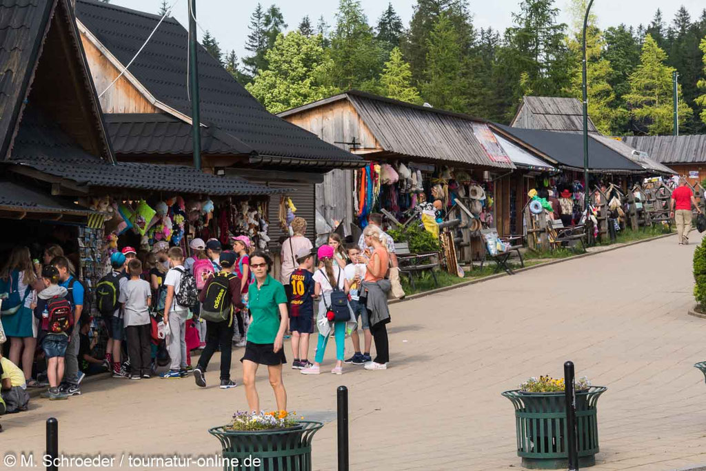 Wer nun, wie wir denkt, Zakopane wäre im Juni eine verschlafene Stadt, die sich wie viele andere Wintersportort von der letzten Saison erholt, der liegt falsch. Hier tobt ganzjährig der Bär. Zakopane ist für viele Polen immer einen Besuch wert. Und so wimmelt es rund um die Innenstadt und die Sprungschanzen nur von Besuchern. Zahlreiche Buden bieten Souvenirs und Verpflegung an. Uns wird der Trubel schnell zu viel und wir suchen uns einen Übernachtungsplatz etwas außerhalb des Zentrum. Das Wetter macht uns am nächsten Morgen leider einen Strich durch die Rechnung. Es ist bewölkt und so lohnt der eigentlich geplante Trip mit der Seilbahn in die Gipfelregion wegen mangelnder Sicht nicht.