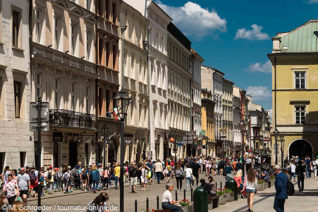 Die Hauptstadt der Woiwodschaft Kleinpolen liegt im Süden Polens an der Weichsel. Nach Warschau ist sie mit etwa 800.000 Einwohnern die zweitgrößte Stadt Polens und gilt als kulturelles und wirtschaftliches Zentrum. Da von Zerstörungen seit den Einfällen der Mongolen im 13. Jahrhundert weitgehend verschont, wurde die historisch wertvolle Altstadt, in der sich Gebäude von der Romanik bis zum Jugendstil finden lassen, bereits 1978 in die Liste der Weltkulturerbe aufgenommen.