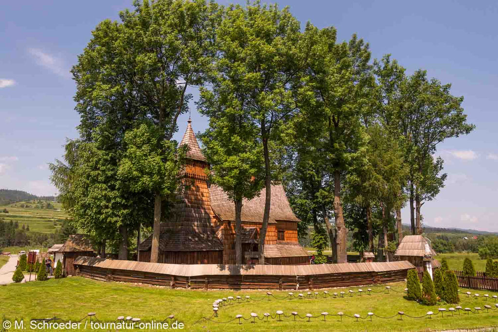 Von dem kleinen Ort Sromowce Nizne mit seiner Holzkirche aus dem 16. Jahrhundert kann man über eine Fussgängerbrücke einen Ausflug in die Slowakei unternehmen – und in einem der Lokale zur Abwechslung einmal wieder in Euro zahlen.