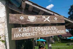 Am Straßenrand sehen wir einen Hinweis auf ein Cafe mit dem schönen Namen Käsitöösahvri.
