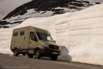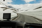 Wir sind draussen und kurz später ändert sich das Bild. Die Strasse führt uns schnell in Höhen über 1.000 m und wir stehen wieder im Winter, zugefrorene Seen, kein Grün, Einsamkeit. Wir fahren durch meterhohen Schnee. "Faszinierend".