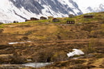 Wir sind hier mit unseren beiden jungen VW-Bus-Fahrern verabredet. Und tatsächlich wir finden sie trotz des Gewühls in einer halbwegs ruhigen Ecke am anderen Fjordufer. Sollen wir hier bleiben? Nein, die Entscheidung fällt schnell. Wir haben genug gesehen und wollen raus aus dem Gewimmel. Die Ausfahrt aus Geiranger gestaltet sich noch einmal schwierig, nicht aufgrund der Straßenverhältnisse, sondern aufgrund der rangierenden Busse, die uns ganz klar zu verstehen geben, dass sie hier Vorfahrt haben.
