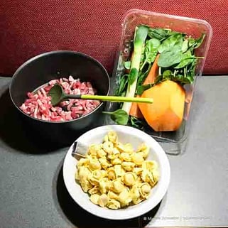 - 250g Tortellini aus der Kühltheke (mit Fleisch: "carne" ode auch vegetarisch)