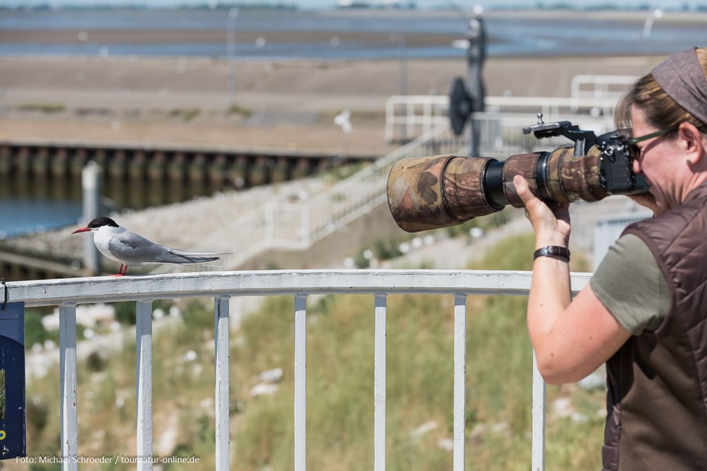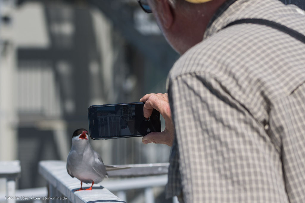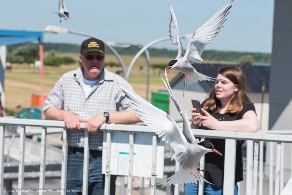 neben den großen Sperrtoren und unterhalb der Besucherplattform und können so unmittelbar beobachtet werden. Aber Achtung: Kommt man den Seeschwalben während der Brutzeit zu nahe, gehen diese