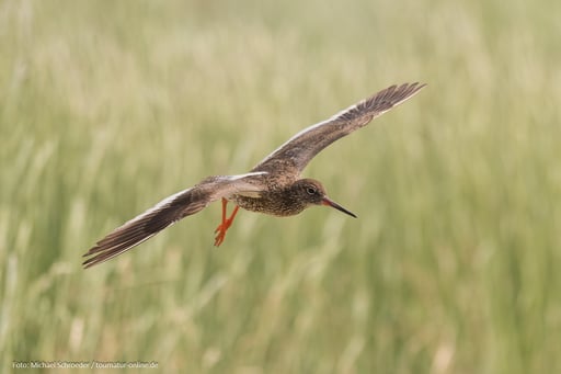Durch den Deich von der Nordsee geschützt brüten hier viele verschiedene Vogelarten. Vor allem Wiesenbrüter wie Feldlerche, Rotschenkel oder Uferschnepfe sowie Bartmeisen, Rohrweihen und Blaukehlchen sind regelmäßige Brutvögel. Auch Seeadler haben wir hier schon gesehen. Zugvögel (Nonnengänse, Ringelgänse, Pfeifenten, Goldregenpfeifer) nutzen das Areal als Stop-Over auf ihrem Weg in den Süden.