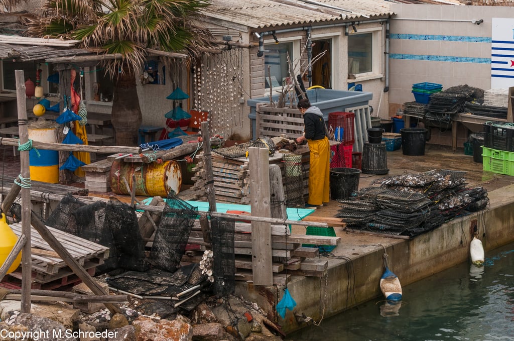 In Grau de Leucarte lädt reges Treiben an einem Fischereihafen zu einem kurzen Zwischenstopp. Hier werden Austern angelandet und in kleinen Buden direkt gesäubert und vermarktet. Das sieht zwar alles sehr einladend aus, uns steht so früh am Tag der Sinn aber noch nicht nach rohem Meeresgetier.