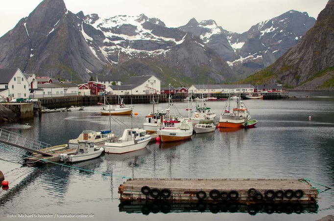 Um so länger wir uns auf den Lofoten aufhalten, um so mehr stellt sich bei uns das Gefühl ein, durch Legoland zu fahren. Auf den Straßen sind PKWs und ungleich viele Wohnmobile unterwegs; Menschen ohne fahrbaren Untersatz sieht man kaum. Wenn wir an Firmen vorbeifahren zeigt sich nur selten Betriebssamkeit. In machen Orten fragen wir uns, ob es sich hier um Potemkinsche Dörfer vor grandioser Kulisse handelt.