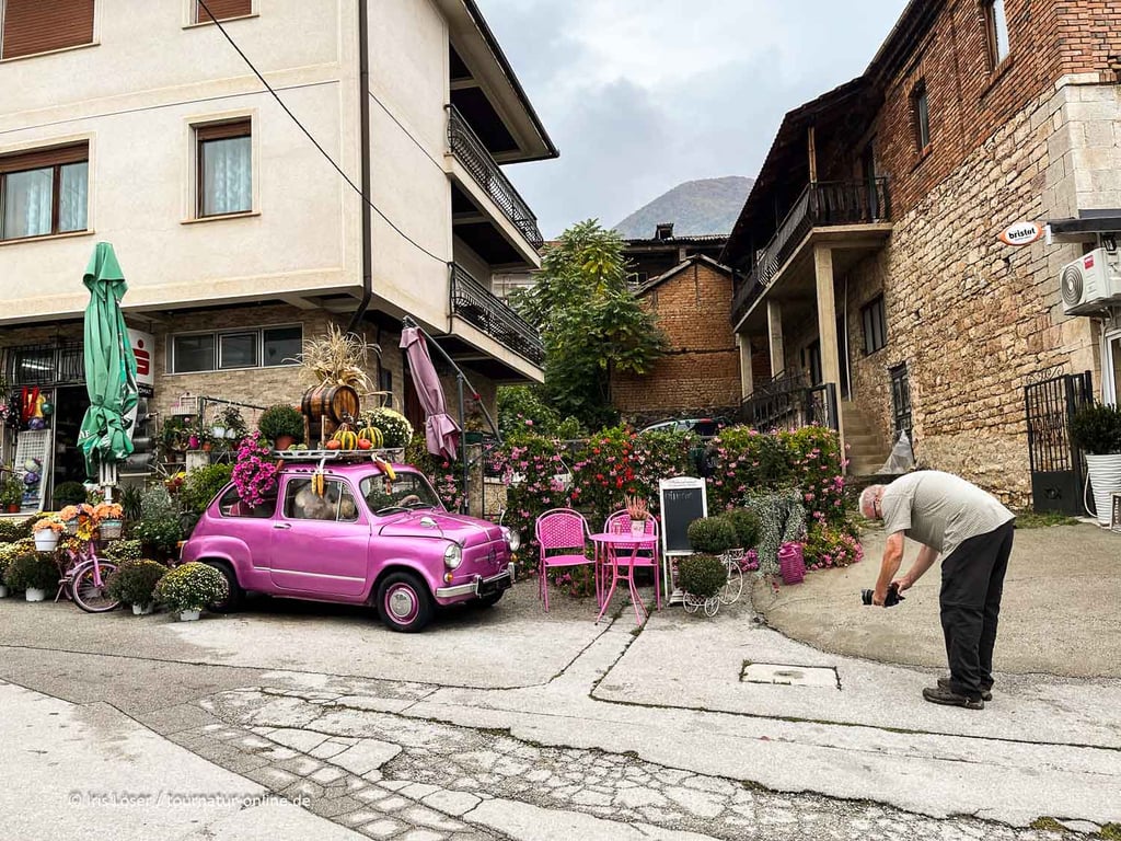 Kurz vor dem Ohridsee machen wir noch einen Abstecher zu einem kleinen Ort in den Bergen. Neben alten Häusern, Wasserquellen und dem Karneval hat der Ort seine eigene Geschichte: Nach dem Zerfall Jugoslawiens hat sich die Gemeinde zwei Jahre lang zur unabhängigen Republik erklärt.