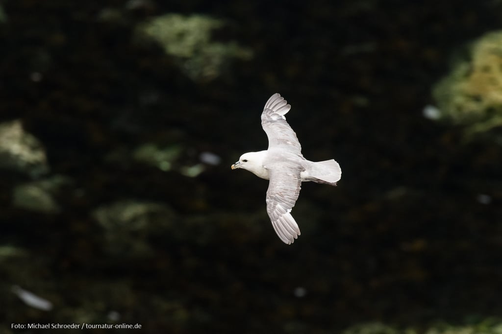 Eine Single Track Road bringt uns zum Leuchtturm Neist Point auf dessen Parkplatz wir auch die nächste Nacht verbringen. Hier lernen wir einen italienischen Landschaftsfotografen kennen, der Fotoreisen organisiert und gerade auf der Suche nach guten Locations ist. Er gibt uns einige wertvolle Tipps. An den steil abfallenden Klippen tummeln sich Möwen, Grylleisten, Lummen und zu unserer großen Freude auch Eissturmvögel. Diese wendigen Flieger könnte man auf den ersten Blick ebenfalls für Möwen handeln. Ihr brettartiger Flug fällt aber sofort auf, sobald man etwas genauer hinschaut.