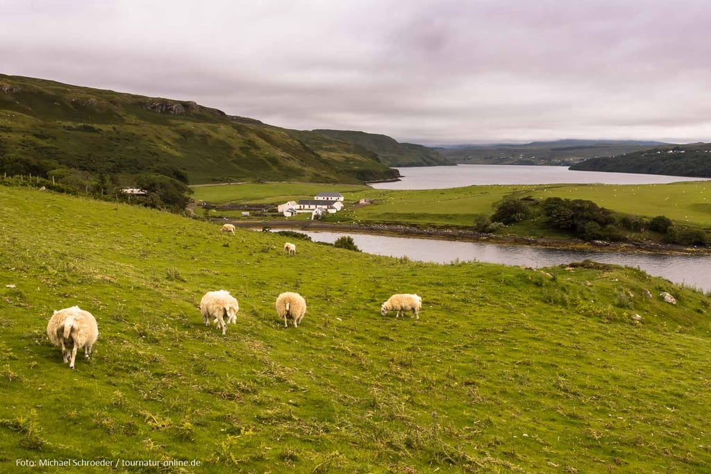 - nahe der B8063: Wildcamping auf Wiese am Loch Slapin (N57°12'03" W 6°00'14")