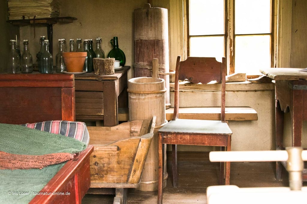 Leider ist das Museum nur im Sommer geöffnet. Das Außengelände ist aber auch außerhalb der Saison zugänglich und so schlendern wir zwischen den Gebäuden herum und erhaschen den ein oder anderen Blick durch die Scheiben ins Innere der Häuser.