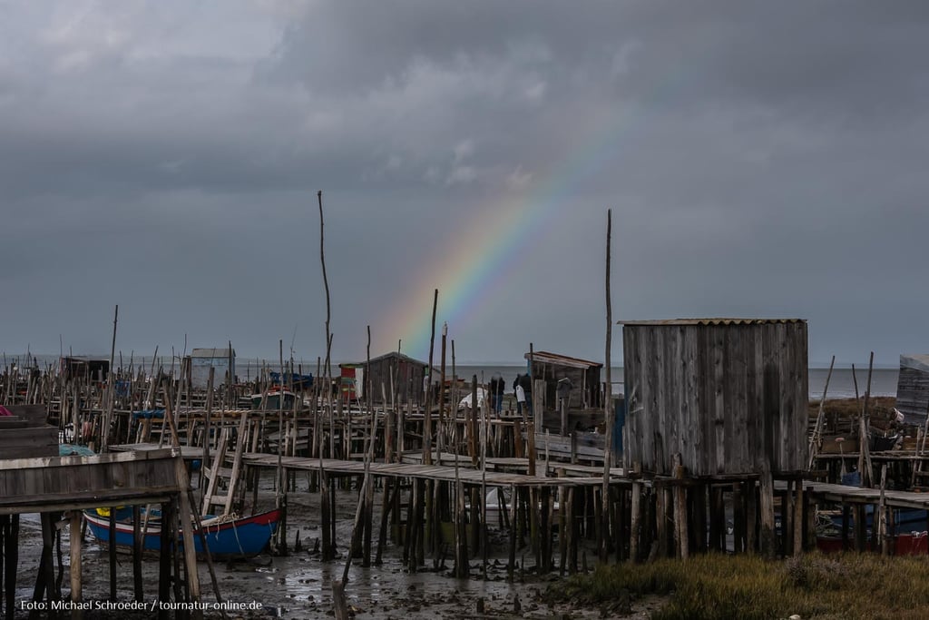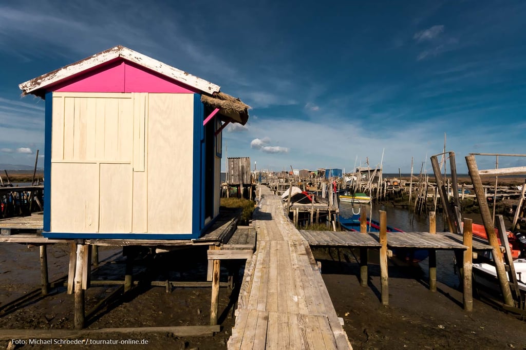Weder unser Reiseführer noch unsere Straßenkarte kennt diesen Ort. Nur durch den Tipp eines anderen Wohnmobilfahrers finden wir den Cais Palafítico da Carrasqueira, ein Paradies für Fotografen.