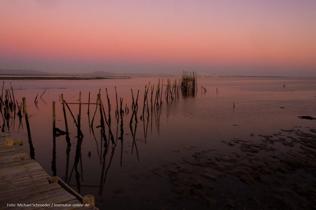 Unser nächstes Ziel ist das Reserva Natural do Estuario do Sado an der Sado-Mündung östlich von Lissabon. Das Mündungsgebiet des sich hier nach 180 Flusskilometern in den Atlantik ergießenden Sado bildet das Naturschutzgebiet, das einer reichen Vogelwelt eine Heimat bietet.