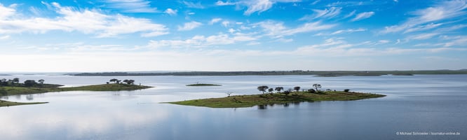 Mit einer Größe von 250 Quadratkilometern ist der Barragem do Alqueva einer der größten Stauseen Europas. Im Volksmund wir der vom Rio Guadiana Fluss gespeiste See "der große See" genannt.