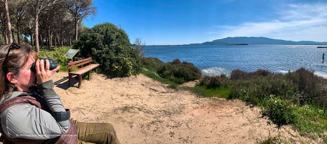 und spazieren durch das waldähnliche Gelände. Wir lernen etwas über Korkeichen und beobachten Vögel aus den beiden Beobachtungshütten direkt an der Lagune.