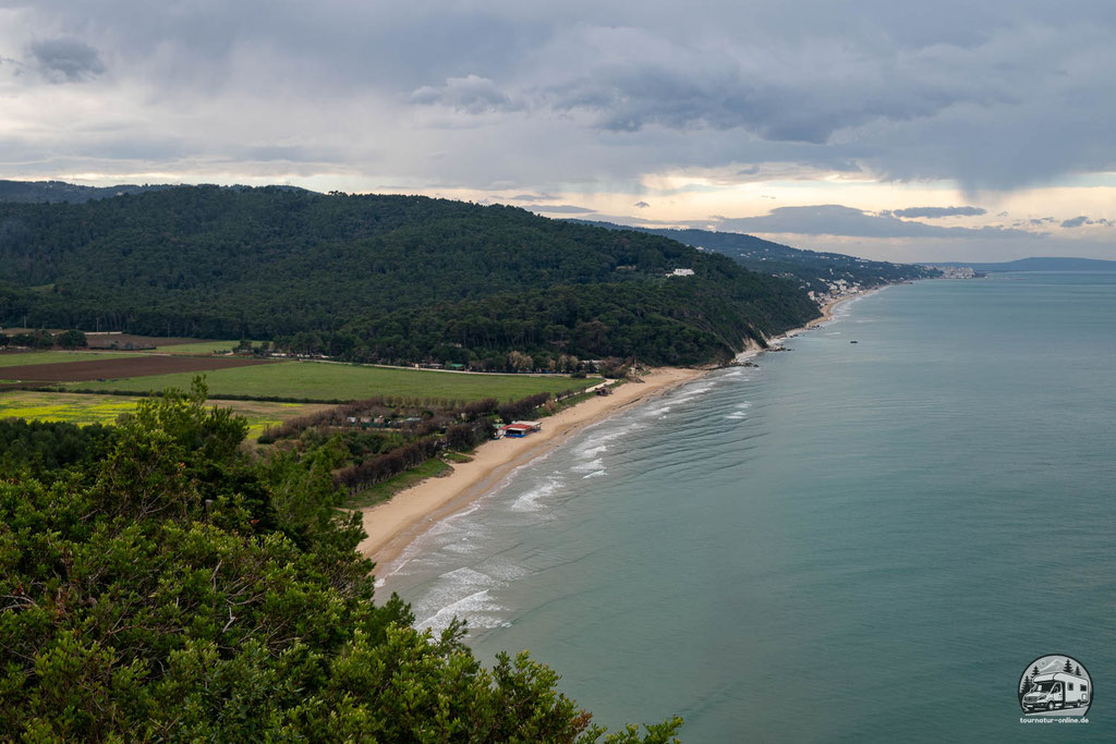 So gestärkt folgen wir am nächsten Morgen der nördlichen Küste. Die Route ist ganz nett, ab und an eröffnet sich ein schöner Panoramablick, wir erkunden eine historische Höhle. Leider sind die Parkmöglichkeiten entlang der Strecke begrenzt und so streichen wir auch den Besuch der Nekropole di Monte Pucci (GPS41.93898, 15.98589), einer Begräbnisstätte aus dem 8. Jahrhundert aus unserem Programm obwohl der Rundwanderweg von der Straße aus ganz interessant aussieht.