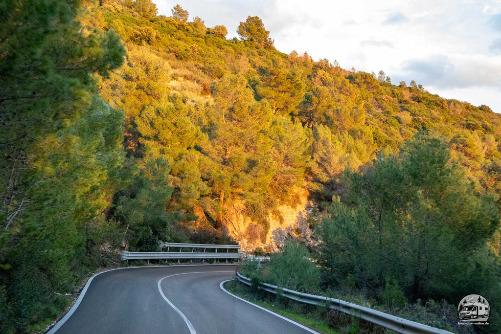 Der folgende Küstenabschnitt ist geprägt von Verwitterung, die imposante Formationen im Karstgestein entstehen ließ. Immer wieder halten wir an, um zu fotografieren. Das Innere der Halbinsel ist von dunklem Wald, dem Forestra Umbra bedeckt, der im Abendlicht interessante Motive bietet.