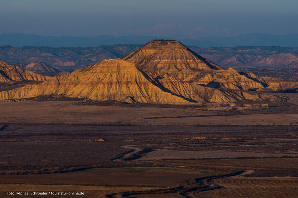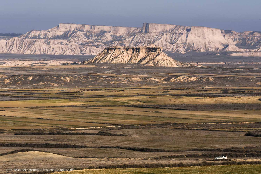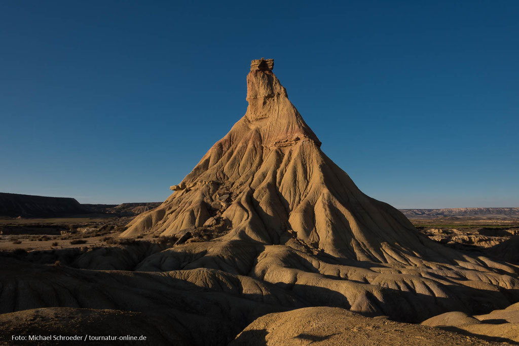 Einfach in der Halbwüste Bardenas Reales der Navarra südlich von Pamplona/Spanien vorbeischauen und man hat beides. Ok, vielleicht in etwas kleinerem Maßstab, aber auch der Aufwand für die Anreise hält sich in Grenzen. Besonders früh am Morgen oder kurz vor Sonnenuntergang entfaltet das Gebiet seinen vollen Charme.